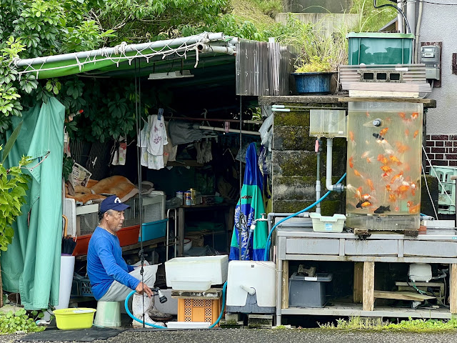 I stopped at a Lawsons for a cream-filled pastry, two donuts, and a Craft Boss latte. It sprinkled while I sat there. The coast was dotted with small fishing villages and I believe this was my favorite Japanese coast yet.